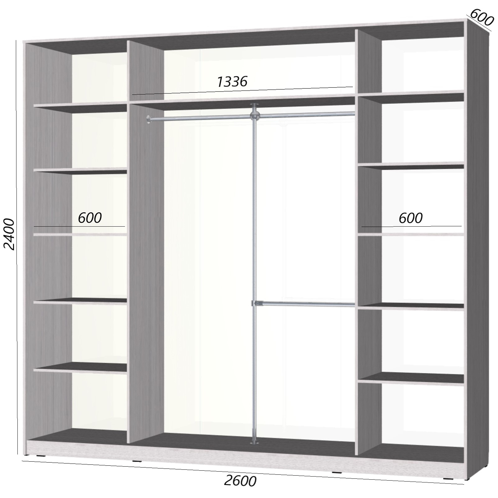 Шкаф-купе Старт 3-дверный без зеркала со вставками 2600 (высота 2400, глубина 600), материал корпуса - ЛДСП. Производитель - VM-mebel.