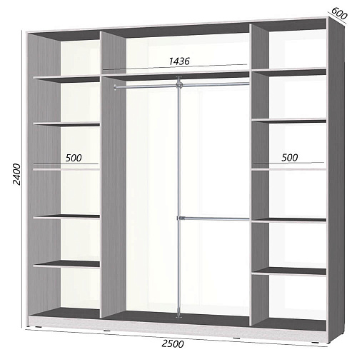 Шкаф-купе серии «Старт» 2500 - подойдет даже самой активной моднице, или же семейству из нескольких человек. Его длина 2,5 метра! Благодаря продуманной конструкции внутреннего наполнения сюда поместиться больше по сравнению с аналогичными конструкциями.