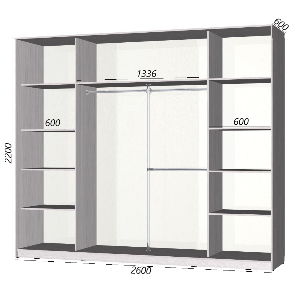 Шкаф-купе Старт 3-дверный с 3-мя зеркалами 2600 (высота 2200, глубина 600) доступен к заказу в различных вариантах исполнения цвета фасада и корпуса, среди которых каждый сможет найти подходящий своему интерьеру.