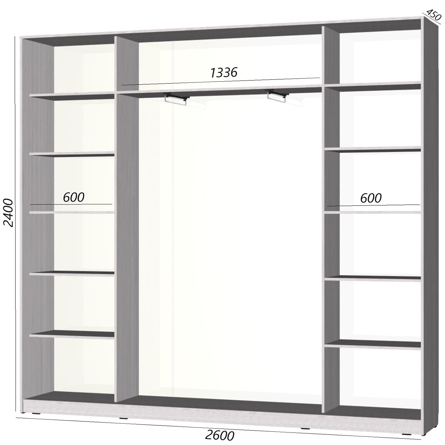 Шкаф-купе Старт 3-дверный с 3-мя зеркалами 2600 (высота 2400, глубина 450) доступен к заказу в различных вариантах исполнения цвета фасада и корпуса, среди которых каждый сможет найти подходящий своему интерьеру.