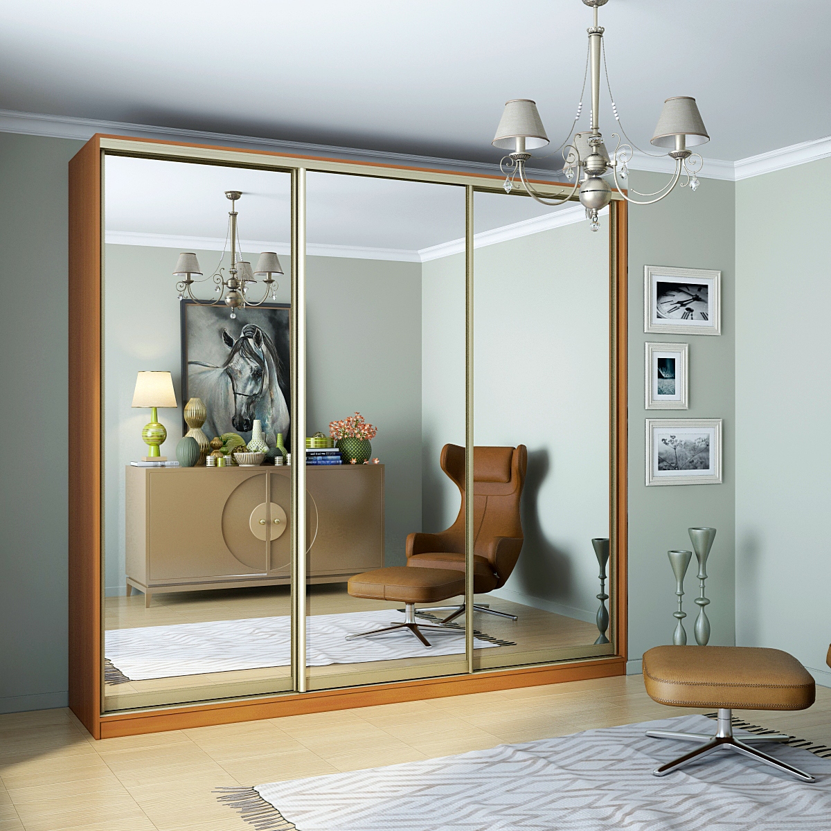 Шкаф-купе Старт 3-дверный с 3-мя зеркалами 2600 (высота 2400, глубина 600), материал корпуса - ЛДСП. Производитель - VM-mebel.