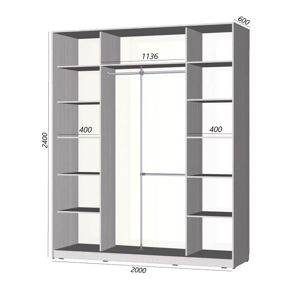 Шкаф-купе Старт 3-дверный с 3-мя зеркалами со вставками 2000 (высота 2400, глубина 600) доступен к заказу в различных вариантах исполнения цвета фасада и корпуса, среди которых каждый сможет найти подходящий своему интерьеру.