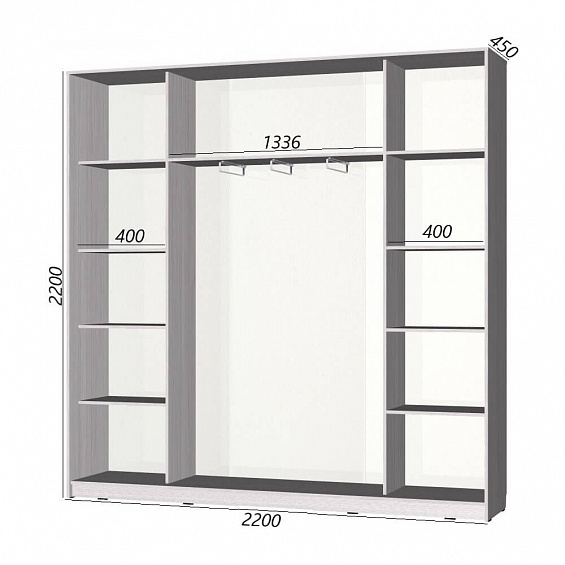 Трехдверный современный шкаф-купе серии «Старт» 2200 украсит собой любое пространство. Он по-настоящему вместительный и отлично спроектирован. Здесь хватит места для хранения одежды целой семьи.