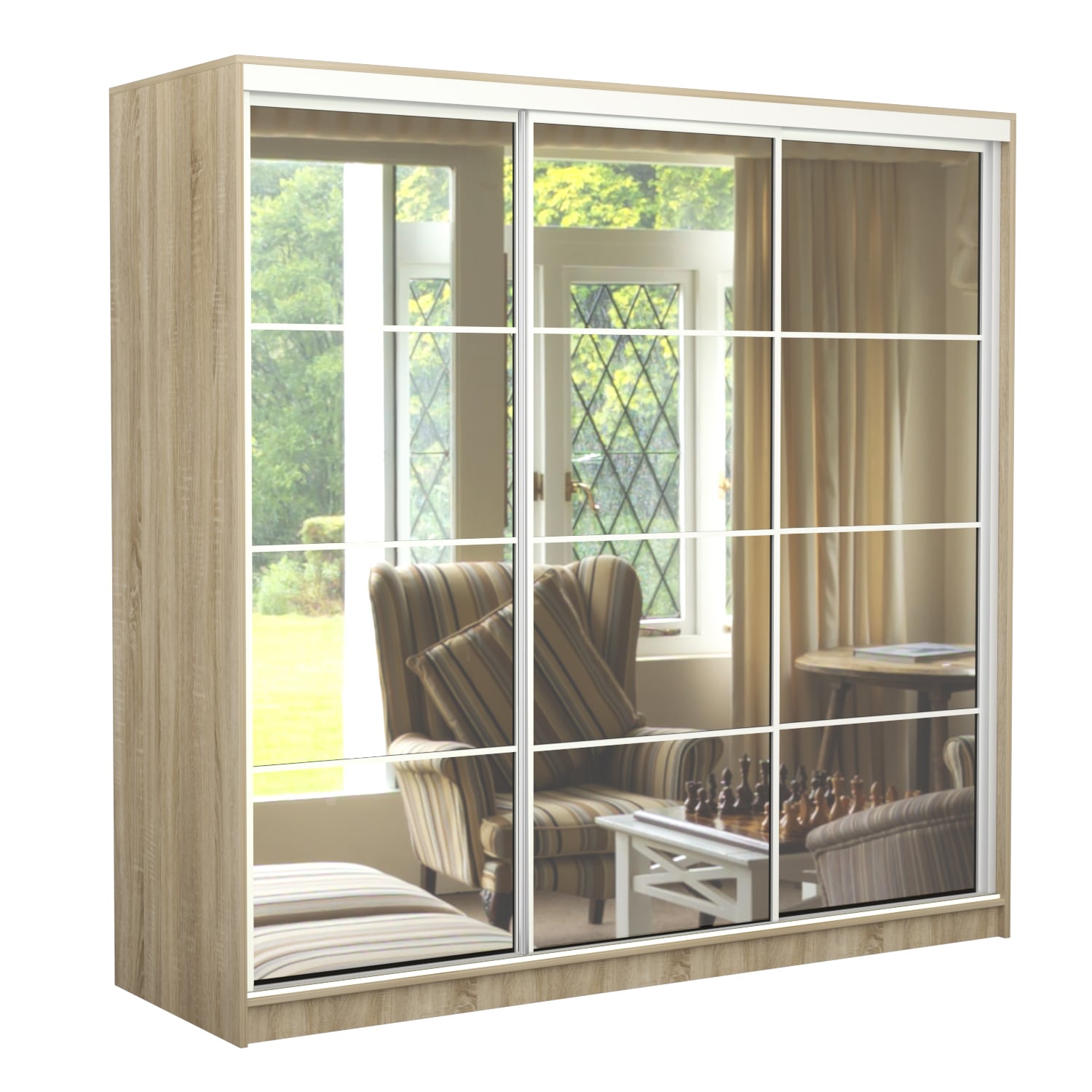Шкаф-купе Старт 3-дверный с 3-мя зеркалами со вставками 2600 (высота 2400, глубина 450), материал корпуса - ЛДСП. Производитель - VM-mebel.