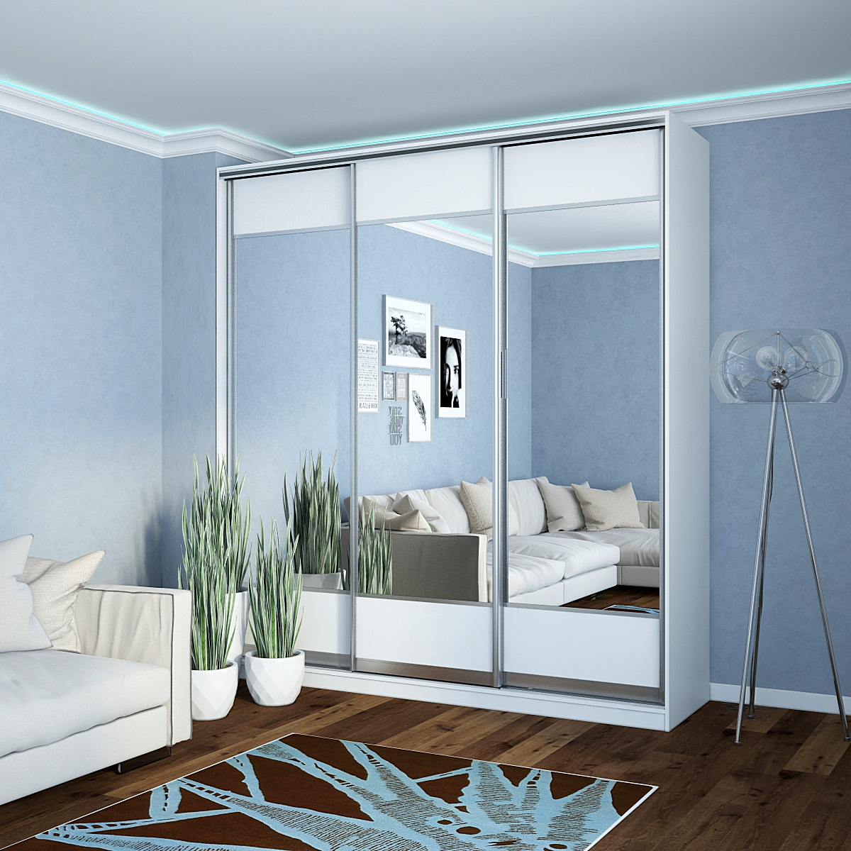Шкаф-купе Старт 3-дверный с зеркалами и вставки верх, низ-ЛДСП 2200 (высота 2400, глубина 450) доступен к заказу в различных вариантах исполнения цвета фасада и корпуса, среди которых каждый сможет найти подходящий своему интерьеру.