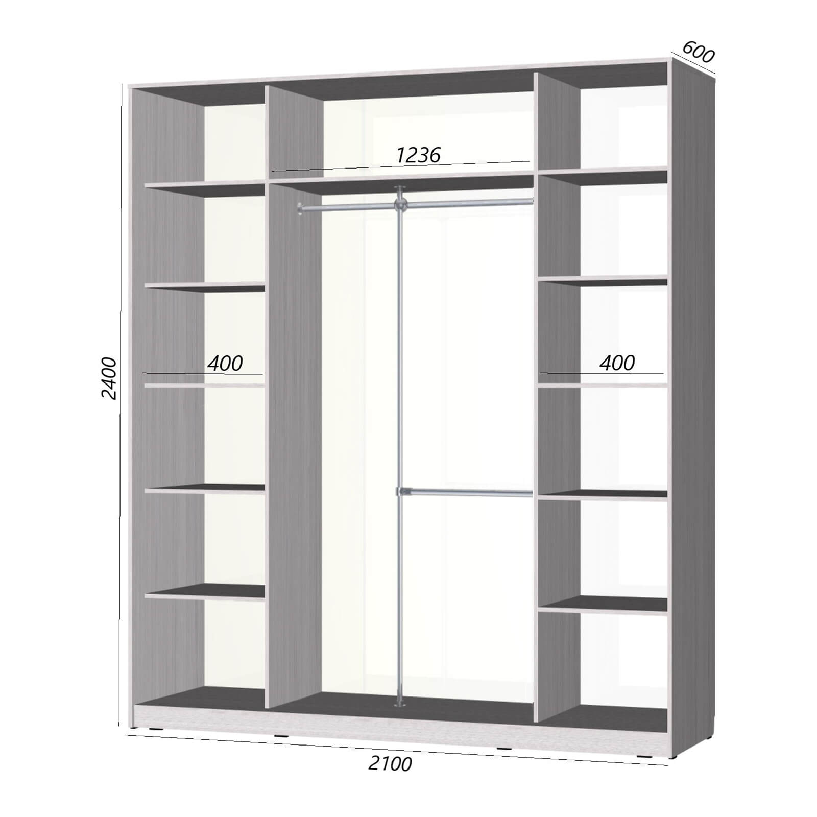 Шкаф-купе Старт 3-дверный с зеркалом и 2 ЛДСП со вставками 2100 (высота 2400, глубина 600), материал корпуса - ЛДСП. Производитель - VM-mebel.
