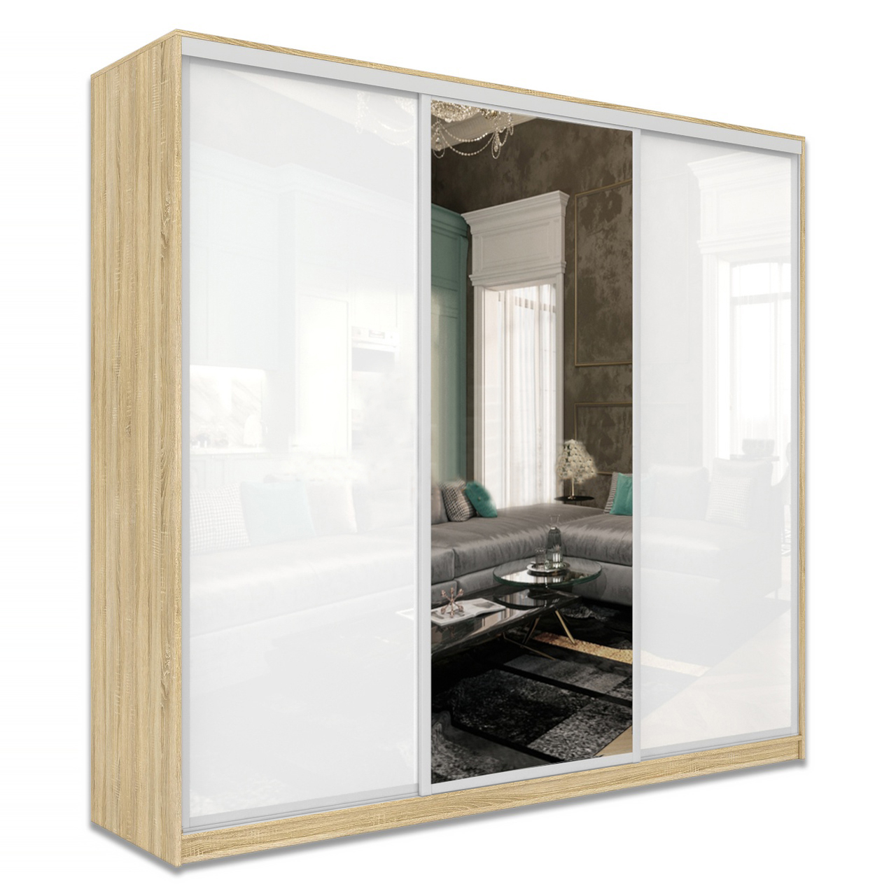 Шкаф-купе Старт 3-дверный с зеркалом и 2 МДФ 2400 (высота 2400, глубина 600), материал корпуса - ЛДСП. Производитель - VM-mebel.