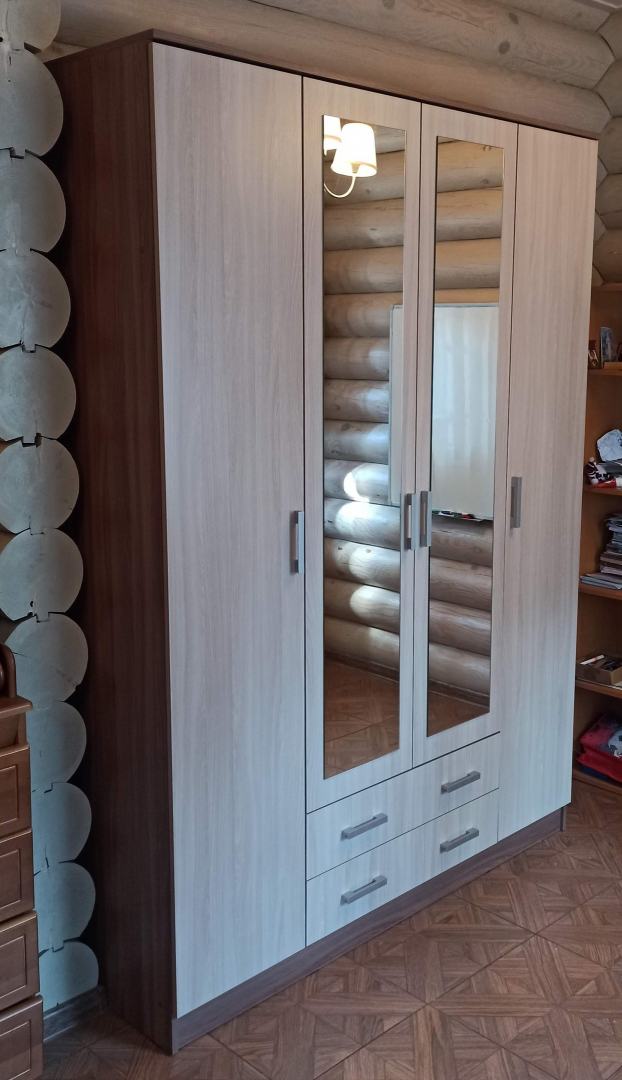 Зеркало в центре шкафа визуально увеличивает пространство и делает шкаф еще более стильным.