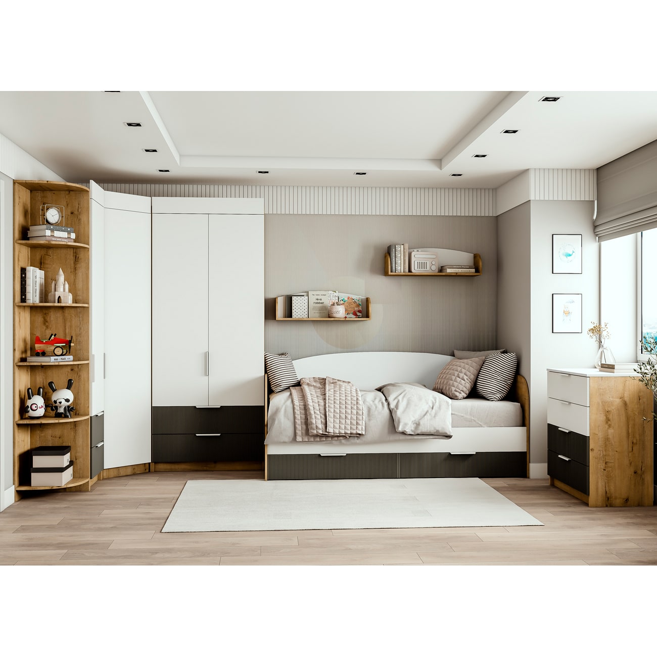 Коллекция «Лавис» – это уникальная модульная система, созданная специально для подростков, которые стремятся к стильному и удобному интерьеру в своей комнате. Одной из главных особенностей коллекции «Лавис» являются уникальные фасады с рельефной вертикальной фрезеровкой.