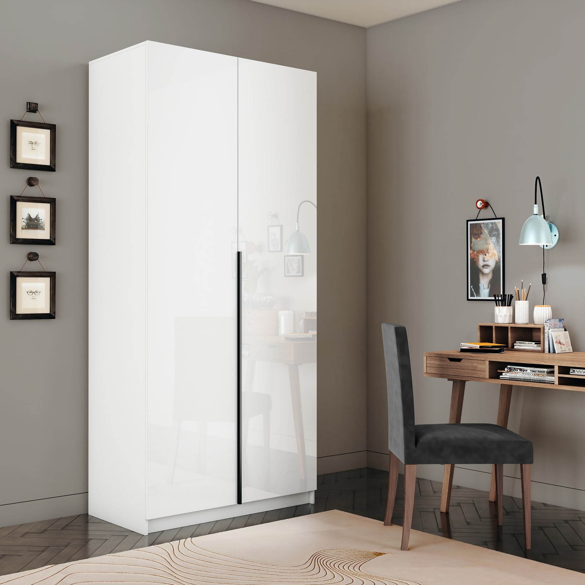 Шкаф оснащен долговечной, ударостойкой кромкой ПВХ, которая защищает его торцы от сколов и повреждений. Мебельные петли Titus B-Type обеспечивают открывание и закрывание двери под углом 110 градусов, а также предотвращают ее перекос. Шкаф оснащен удобной минималистичной ручкой, изготовленной из алюминия.