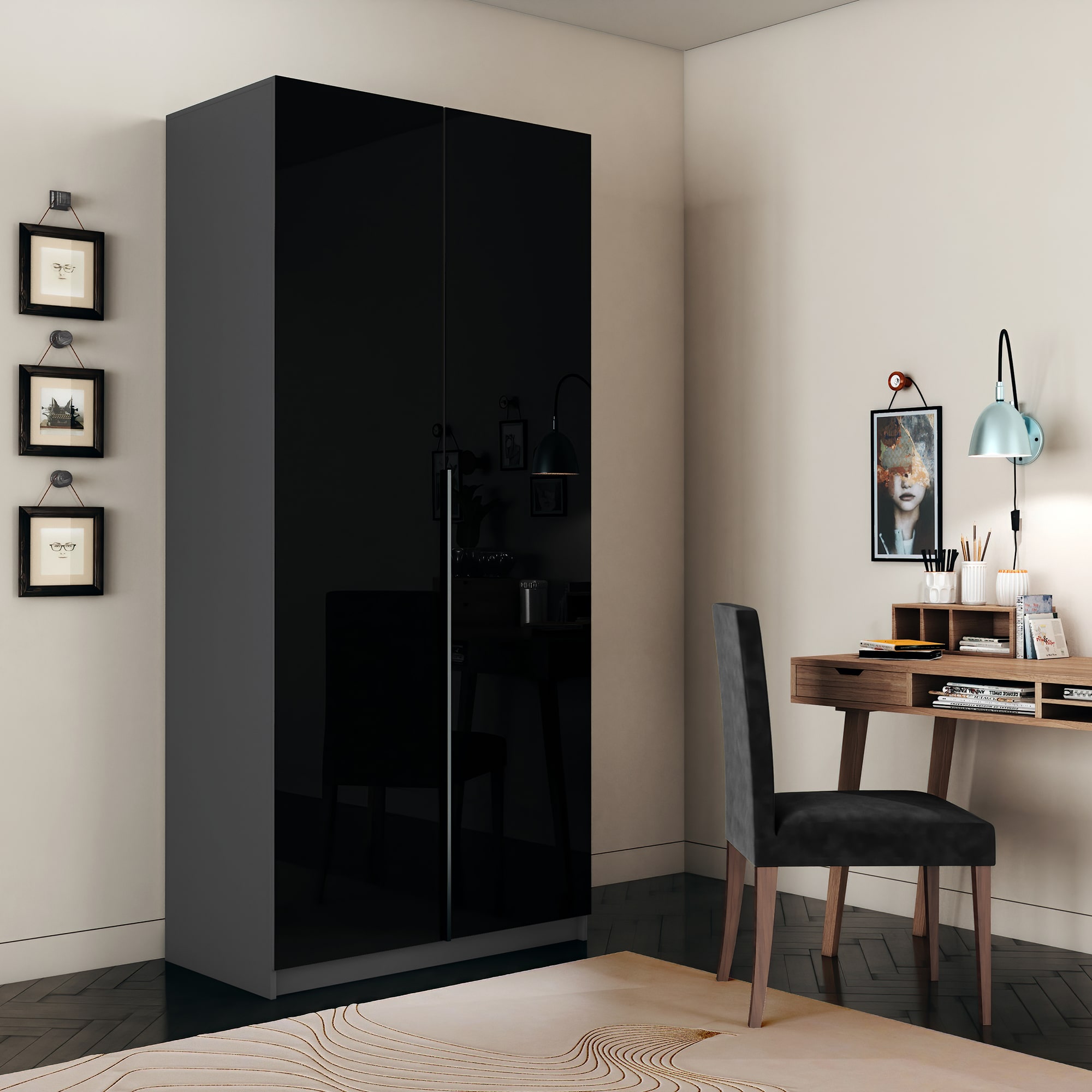 Шкаф оснащен долговечной, ударостойкой кромкой ПВХ, которая защищает его торцы от сколов и повреждений. Мебельные петли Titus B-Type обеспечивают открывание и закрывание двери под углом 110 градусов, а также предотвращают ее перекос. Шкаф оснащен удобной минималистичной ручкой, изготовленной из алюминия.