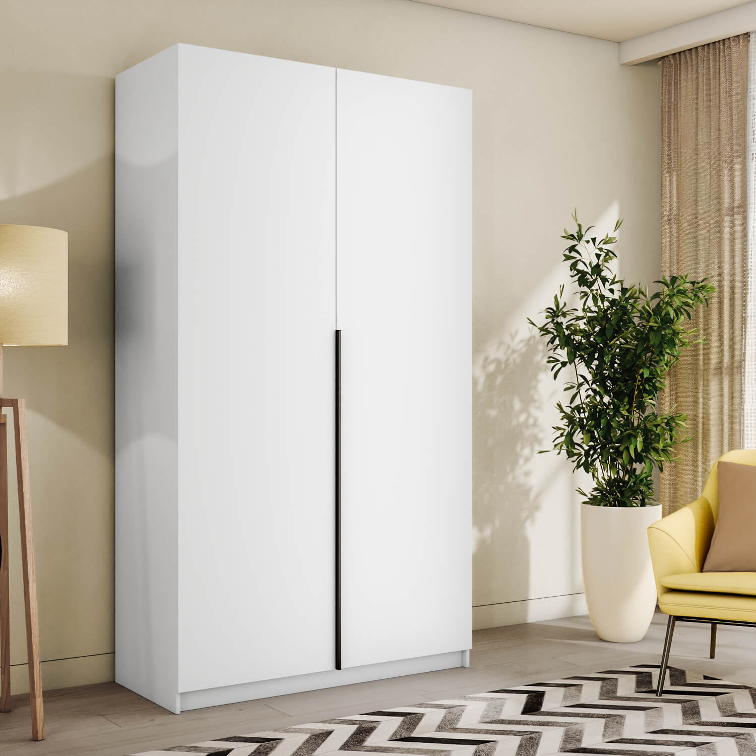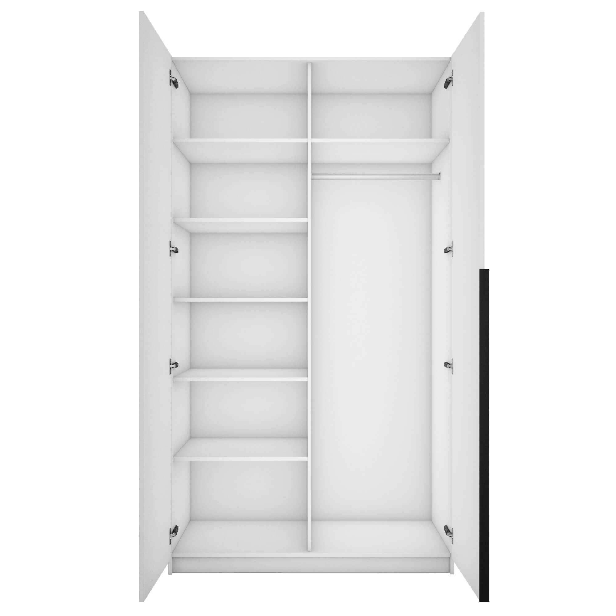 Шкаф оснащен долговечной, ударостойкой кромкой ПВХ, которая защищает его торцы от сколов и повреждений. Мебельные петли Titus B-Type обеспечивают открывание и закрывание двери под углом 110 градусов, а также предотвращают ее перекос. Шкаф оснащен удобной минималистичной ручкой, изготовленной из алюминия.