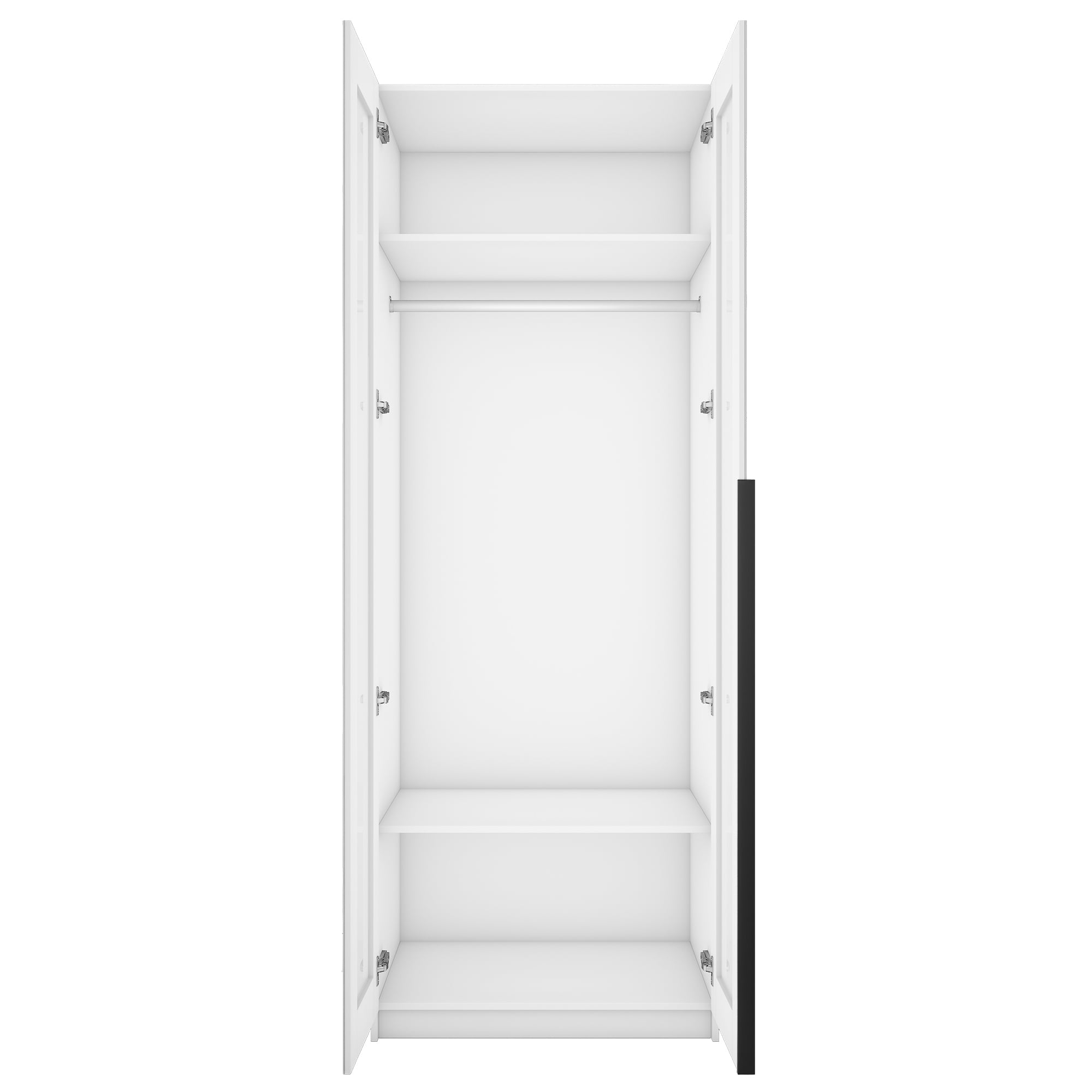 Шкаф оснащен долговечной, ударостойкой кромкой ПВХ, которая защищает его торцы от сколов и повреждений. Мебельные петли Titus B-Type обеспечивают открывание и закрывание двери под углом 110 градусов, а также предотвращают ее перекос. Шкаф оснащен удобной минималистичной ручкой, изготовленной из алюминия.