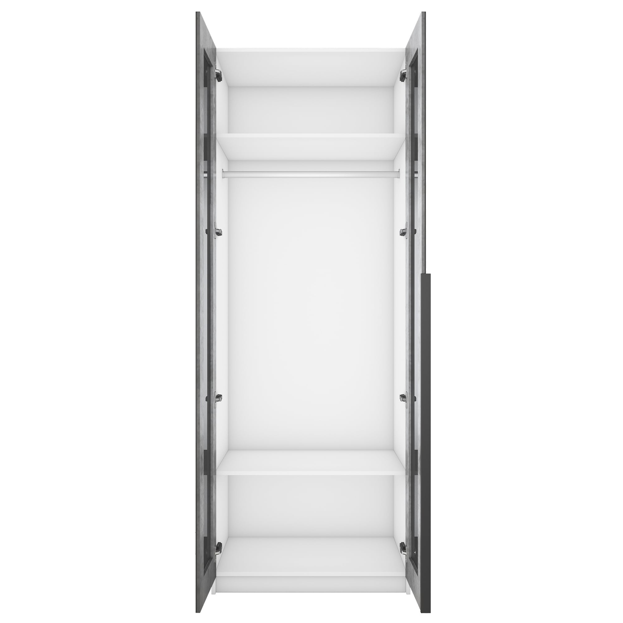 Шкаф оснащен долговечной, ударостойкой кромкой ПВХ, которая защищает его торцы от сколов и повреждений. Мебельные петли Titus B-Type обеспечивают открывание и закрывание двери под углом 110 градусов, а также предотвращают ее перекос. Шкаф оснащен удобной минималистичной ручкой, изготовленной из алюминия.