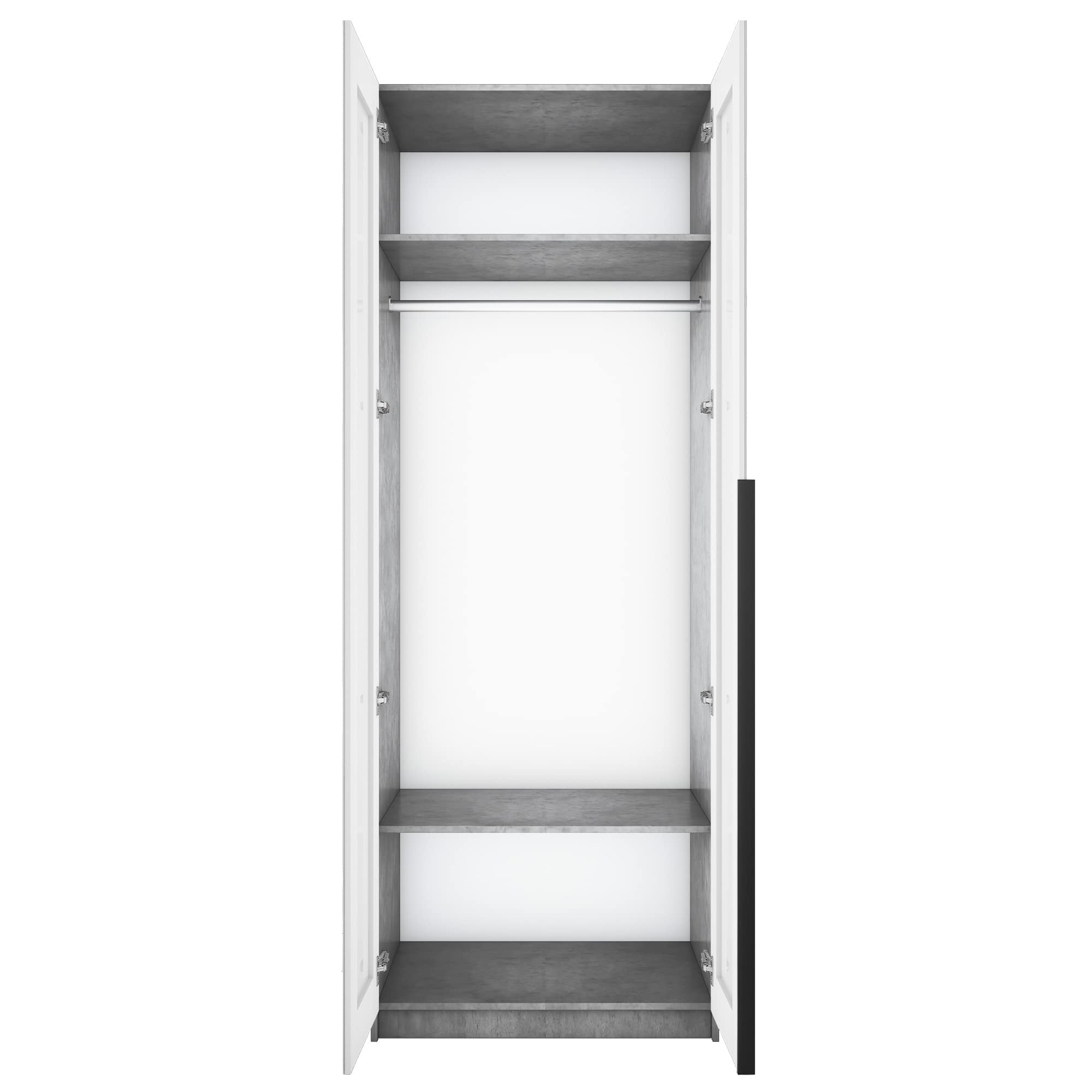 Шкаф оснащен долговечной, ударостойкой кромкой ПВХ, которая защищает его торцы от сколов и повреждений. Мебельные петли Titus B-Type обеспечивают открывание и закрывание двери под углом 110 градусов, а также предотвращают ее перекос. Шкаф оснащен удобной минималистичной ручкой, изготовленной из алюминия.