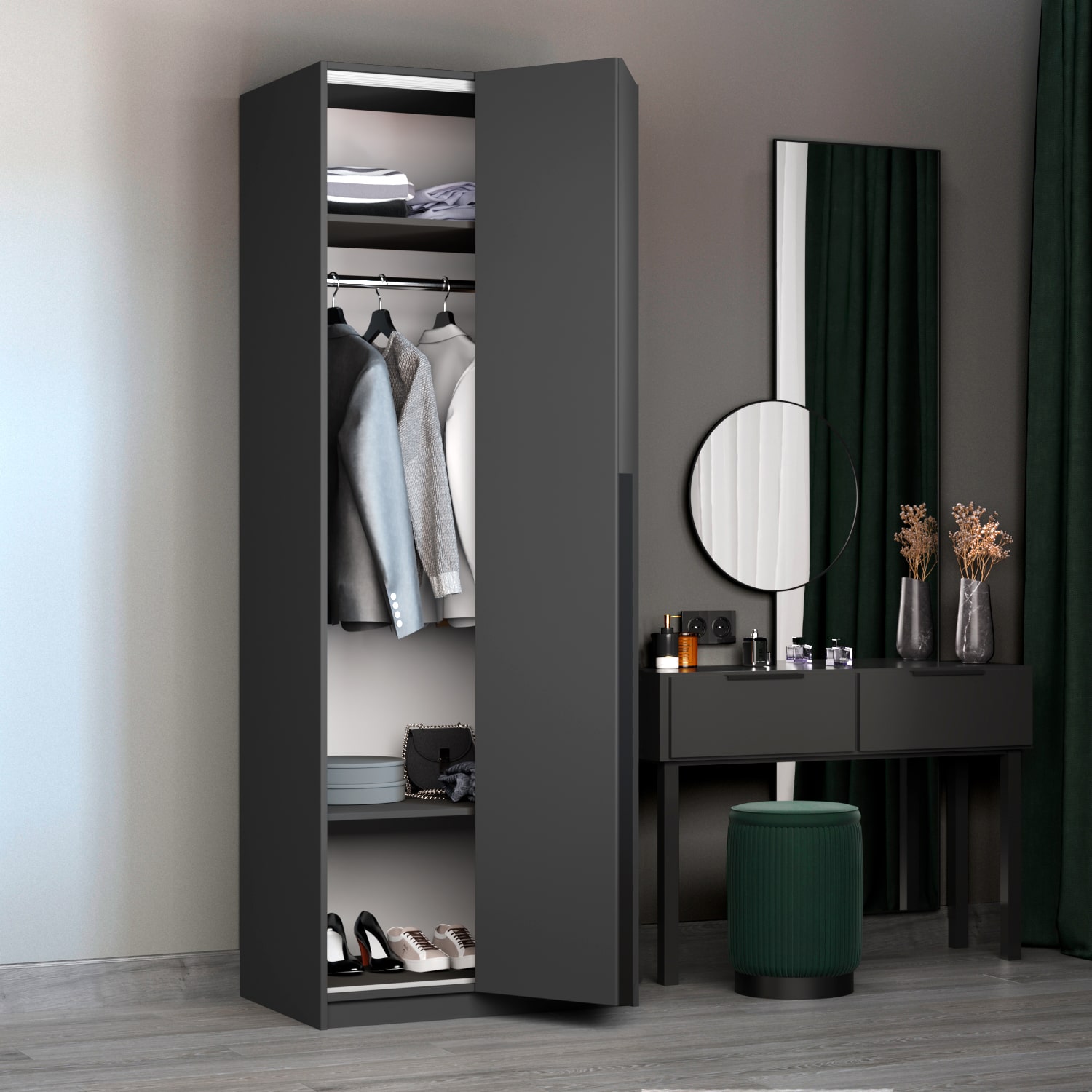 Шкаф оснащен долговечной, ударостойкой кромкой ПВХ, которая защищает его торцы от сколов и повреждений. Удобная минималистичная ручка, изготовленная из алюминия.