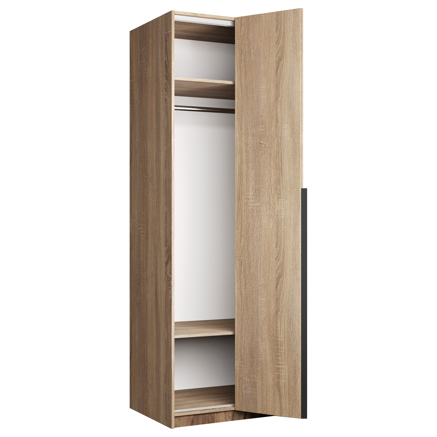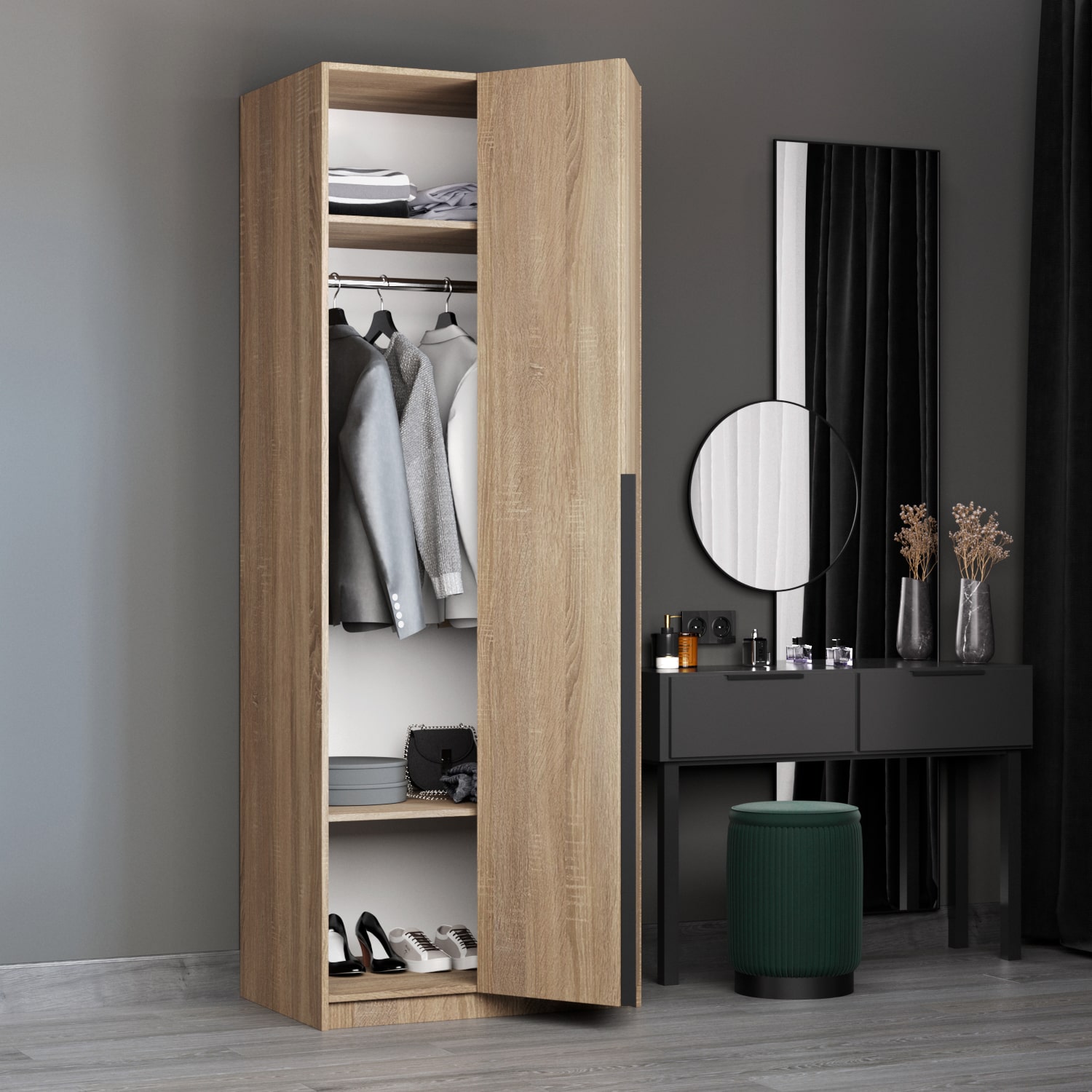 Шкаф оснащен долговечной, ударостойкой кромкой ПВХ, которая защищает его торцы от сколов и повреждений. Удобная минималистичная ручка, изготовленная из алюминия.