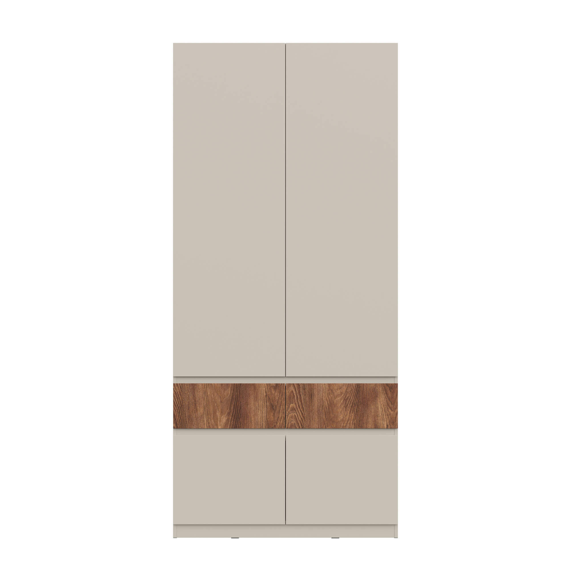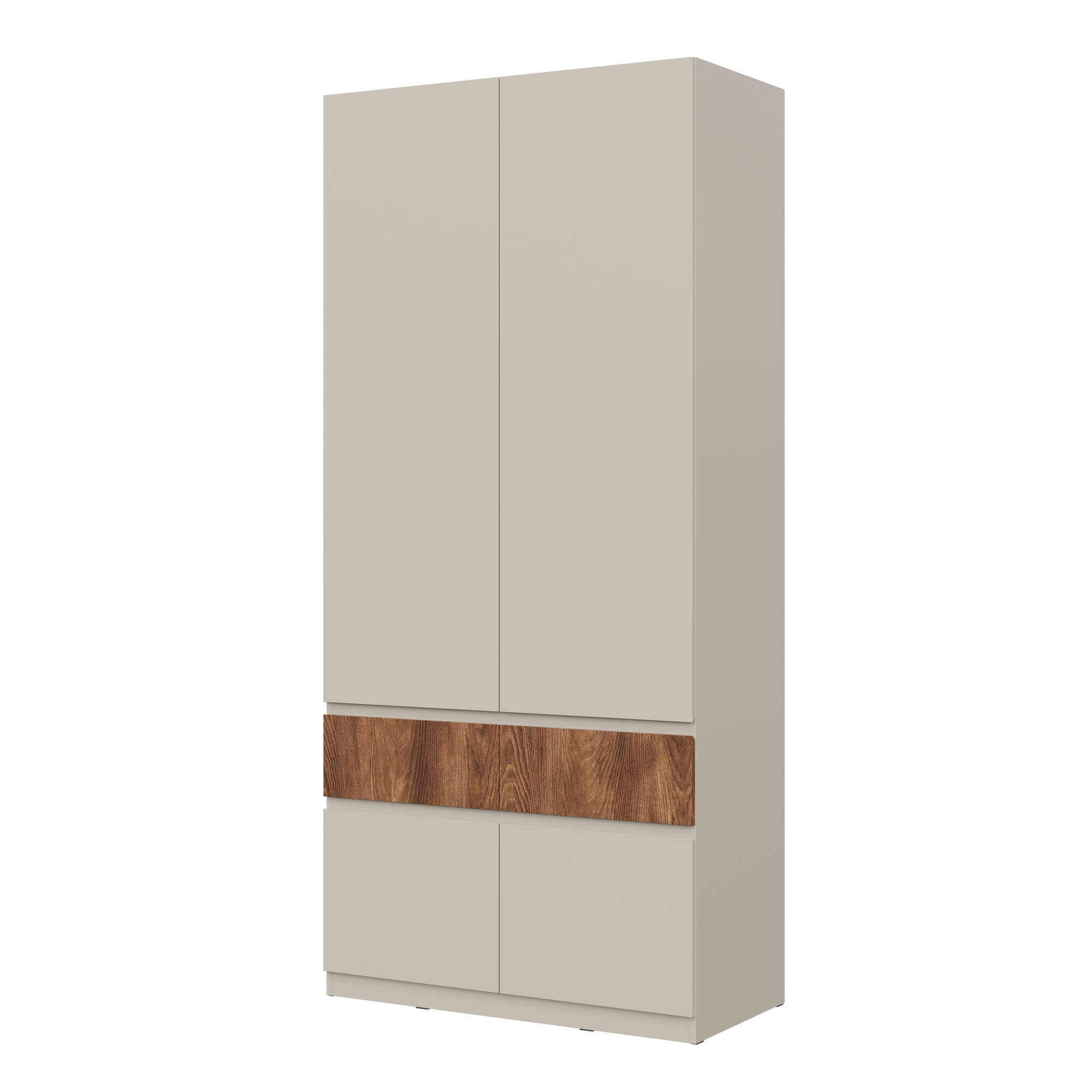 Элегантный дизайн: использование вставки на фасаде в цвете текстурного темного дерева каштан придает мебели уникальность, добавляя контраст.