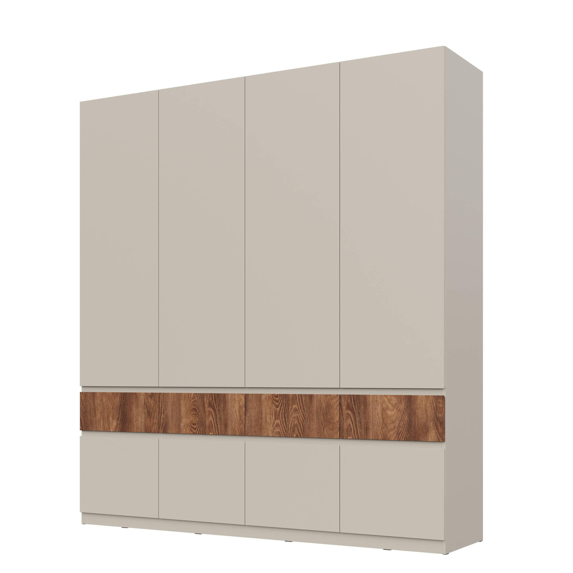 Элегантный дизайн: использование вставки на фасаде в цвете текстурного темного дерева каштан придает мебели уникальность, добавляя контраст.