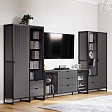 Коллекцию модульной гостиной "Нора" отличает современный оригинальный стиль. Декоративная продольная фрезеровка на фазадах из МДФ и опоры на металлокаркасе цвета соответствуют модным тенденциям этого года в ведущих зарубежных коллекциях.
