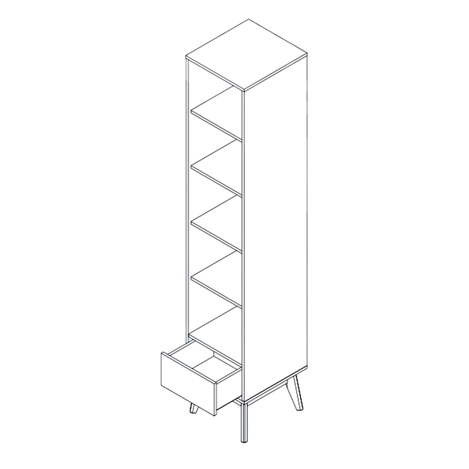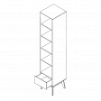 Шкаф состоит из двух отделений. Верхнее отделение закрывается дверцей, за которой находятся две стационарные и две съёмные полки. В нижнем отделении расположен выдвижной ящик на роликовых направляющих.