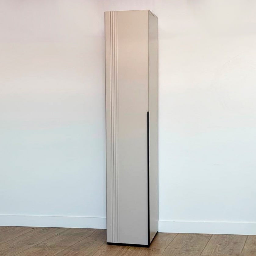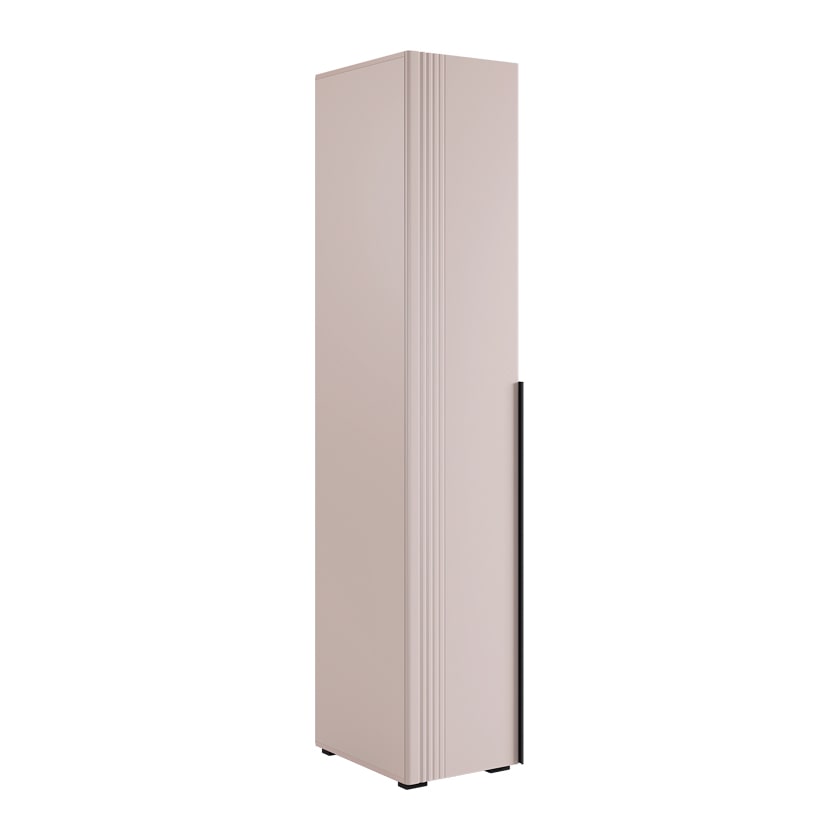 Особое внимание заслуживает фрезеровка фасада, которая придаёт шкафу изысканный вид. Длинная пластиковая ручка гармонично дополняет общий стиль.