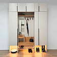 Шкаф оснащен накладными петлями с доводчиком от Боярд, которые обеспечивают плавное и бесшумное закрывание дверей. Наполнение в виде полок предоставляет удобный доступ к одежде, позволяя легко организовать внутреннее пространство.