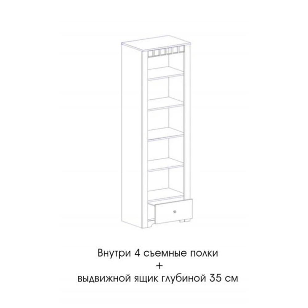 В шкафу расположены распашная дверь и в нижней части ящик на шариковых направляющих глубиной 350 мм. Дверь монтируется как на правую, так и на левую стороны. За распашной дверью располагаются четыре съёмные полки.
