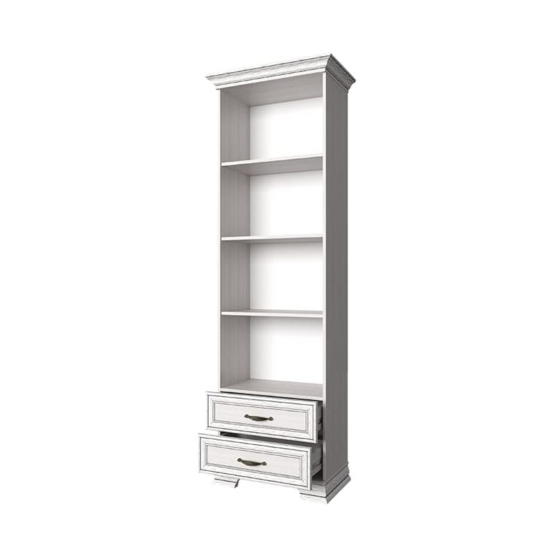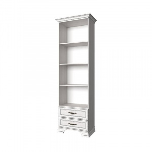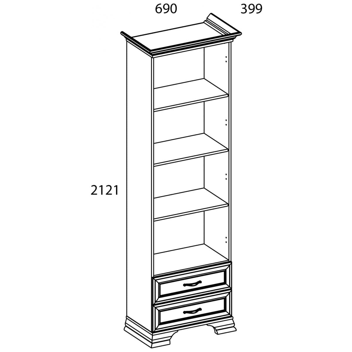 Шкаф открытый Тиффани 2S поможет оформить интерьер гостиной и столовой в классическом стиле. Шкаф открытый 2S – прямой. Конструкция элемента представляет собой одно открытое отделение с полками из ЛДСП для хранения предметов декора, книг, посуды, памятных вещей и т.д., дополнительную комодную секцию – два выдвижных ящика (2S) для организации хранения мелких предметов быта, полотенец, салфеток и других вещей, которые должны быть скрыты.