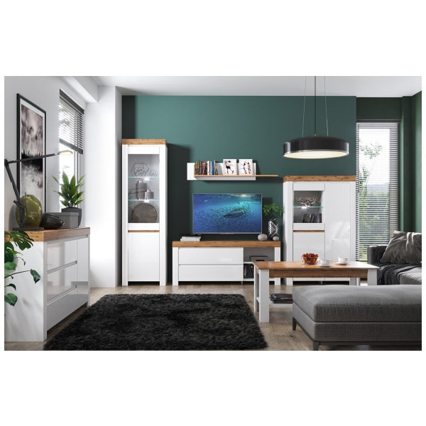 Шкаф с витриной TAURUS 1V1D Белый\Дуб вотан