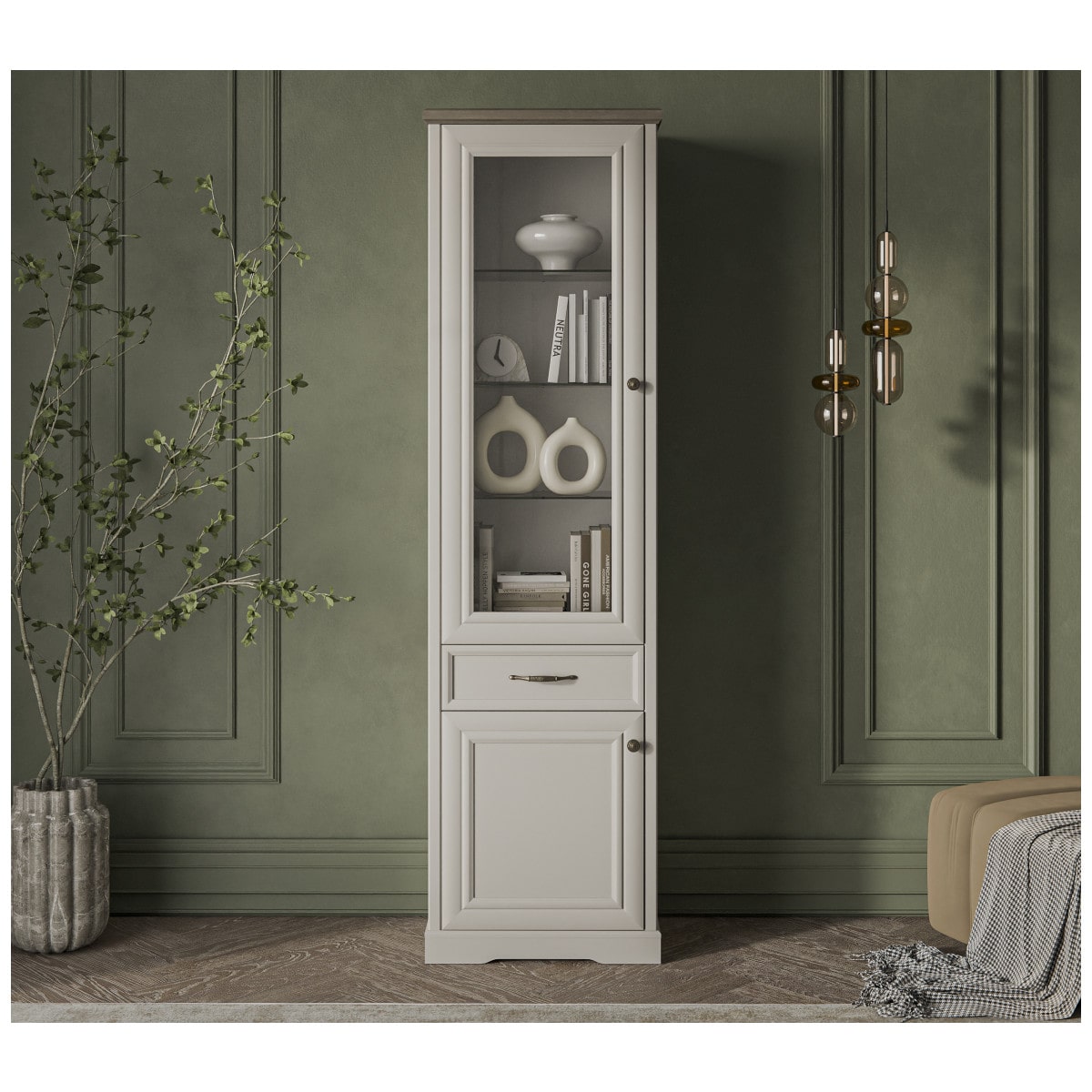 Шкаф с витриной TOSCANA NEW 1V1D1S Персидский жемчуг/Каньон