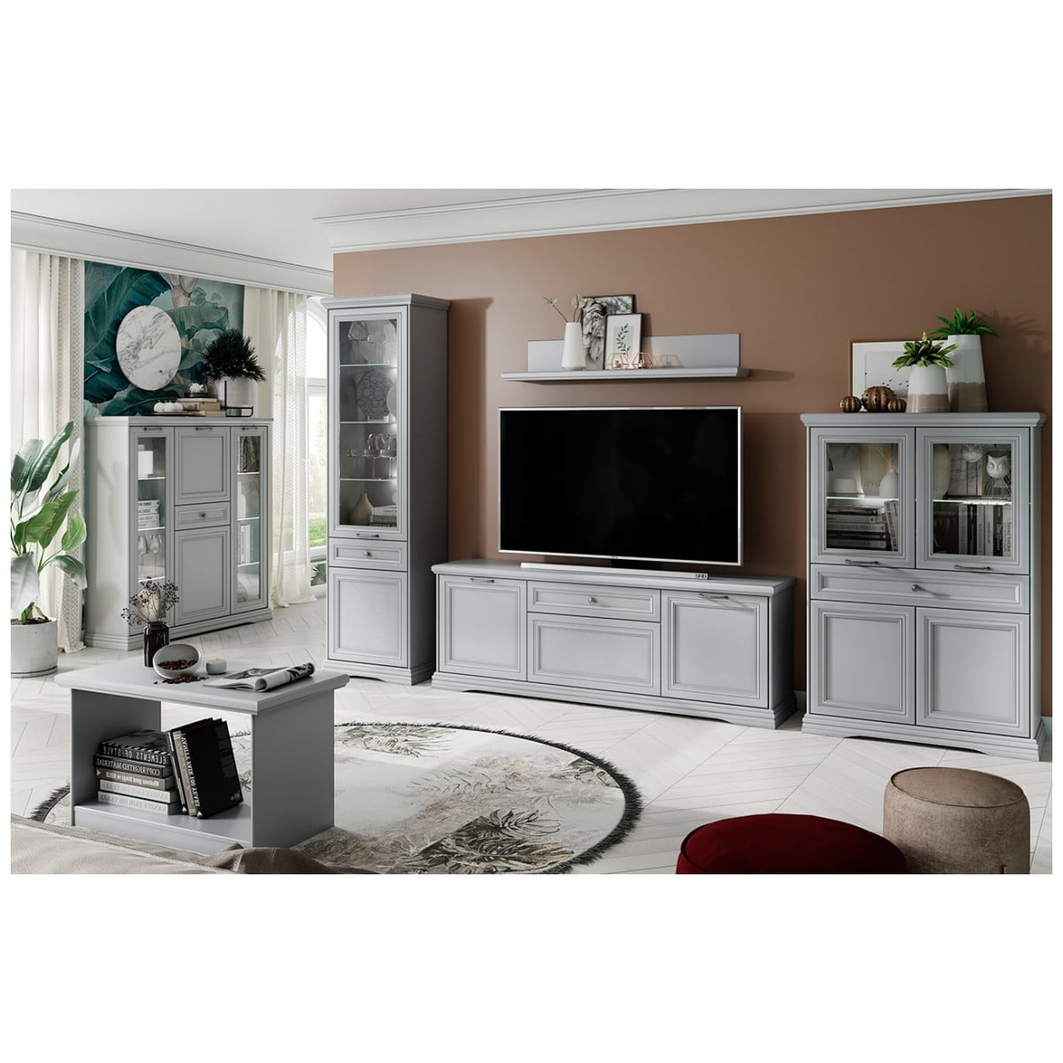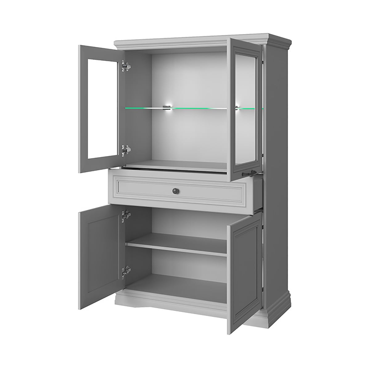 Гармония и изысканность отличают эту прекрасную представительницу неоклассики. Использование светлого тона фасадов подчеркнёт деликатный шик интерьера. Направляющие скрытого монтажа с доводчикам обеспечат плавное бесшумное открывание ящиков.