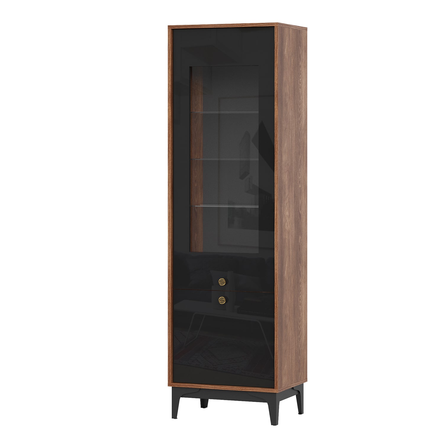 Шкаф-сервант НК BRASS ШКС-1 Каштан Арвадона/Черный глянец