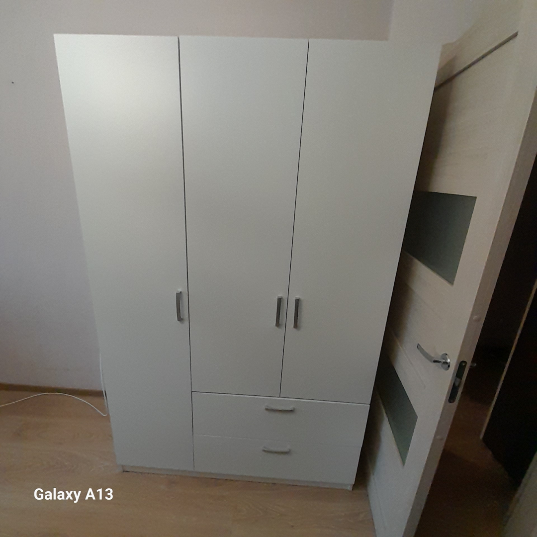 Шкаф оснащен хромированной фурнитурой, что придает ему современный и стильный вид.