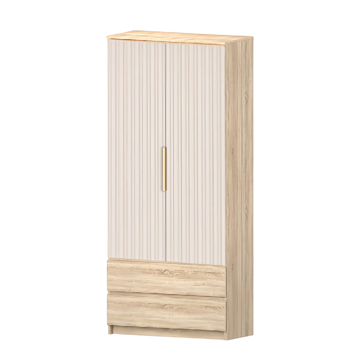 Особенностью шкафа является наличие двух распашных дверей и двух ящиков. Это позволяет использовать пространство шкафа максимально эффективно, обеспечивая быстрый доступ к вещам и удобное хранение.