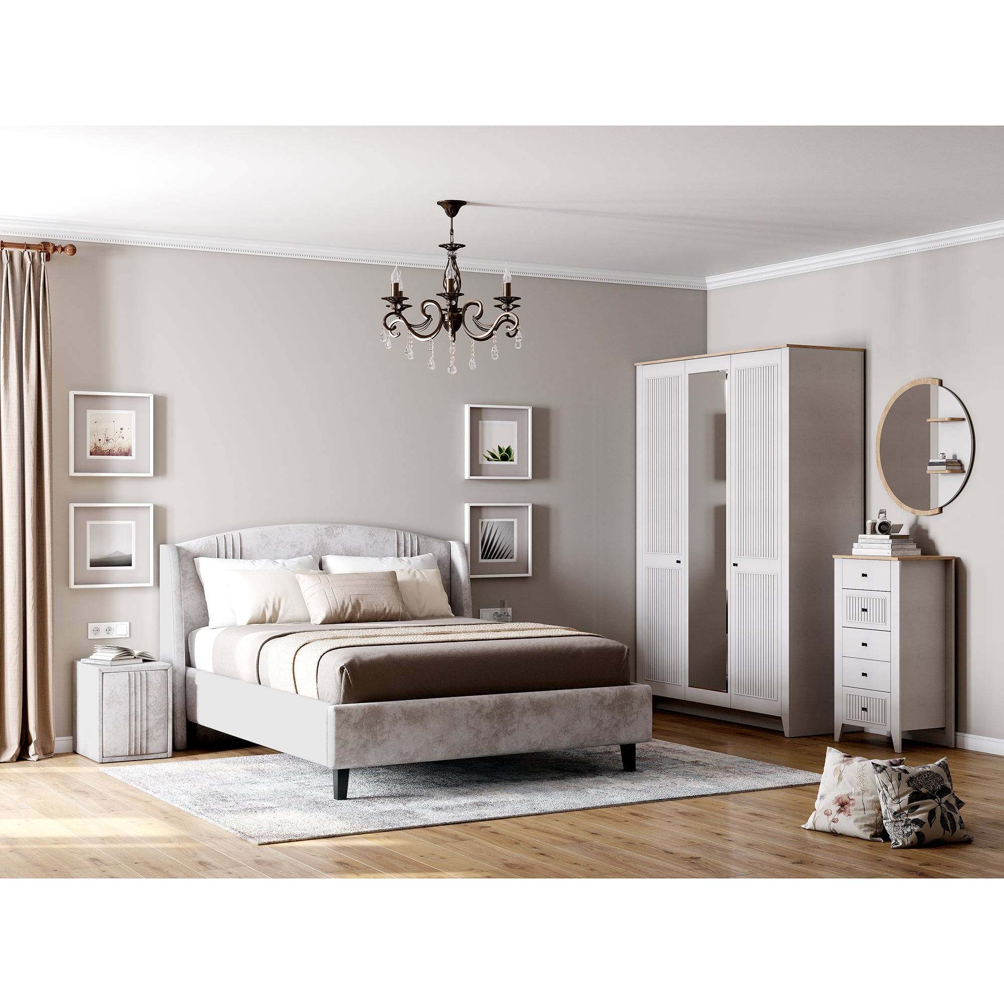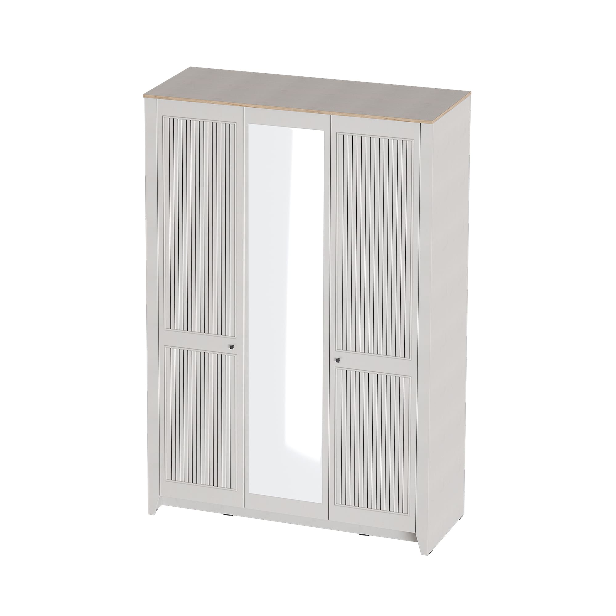 Шкаф 3 дверный Валенсия с зеркалом выполнен из (ЛДСП) в комбинации Дуб натуральный светлый / Персидский жемчуг.