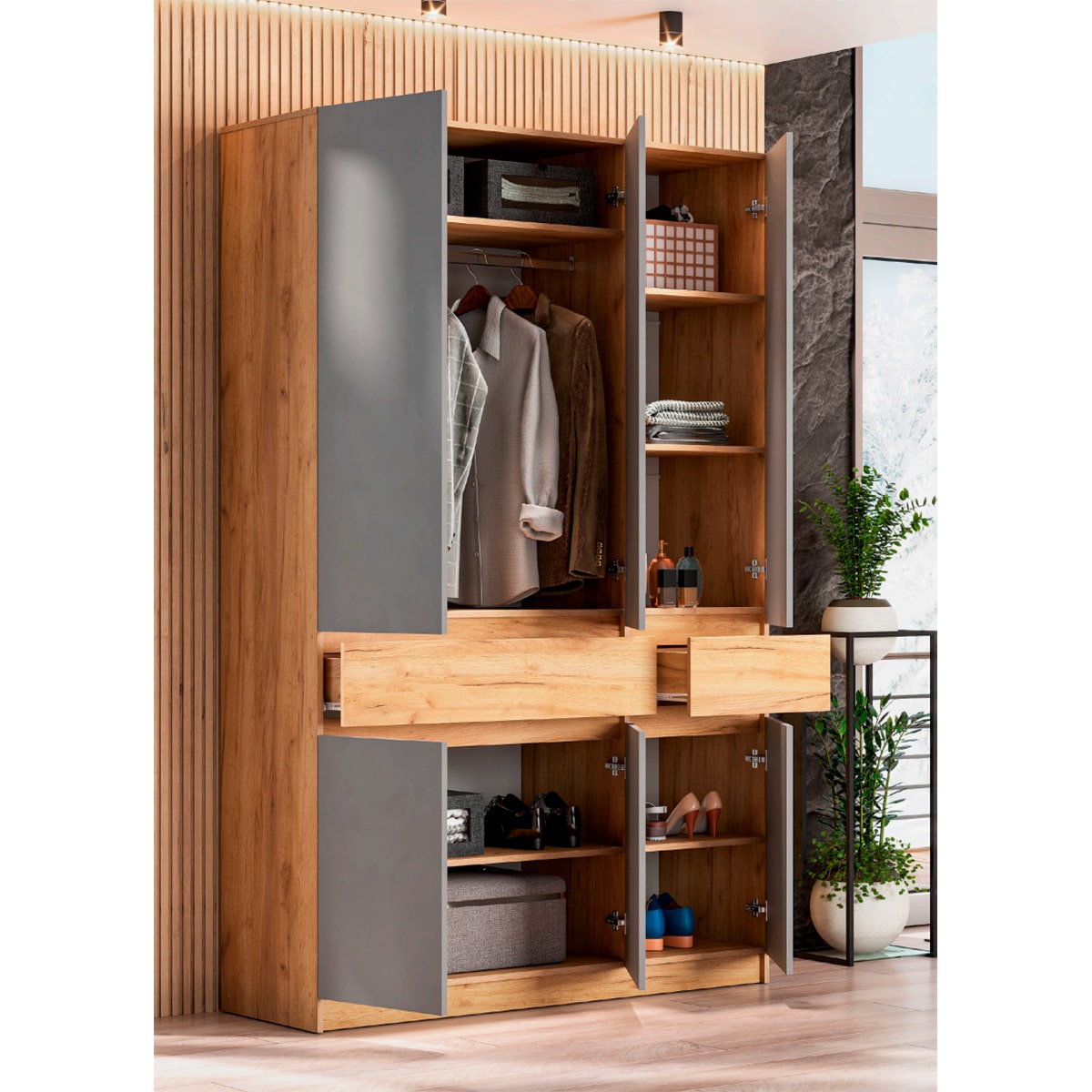 Отсутствие привычных ручек делает шкафную группу "Авиньон" современной и безупречной.