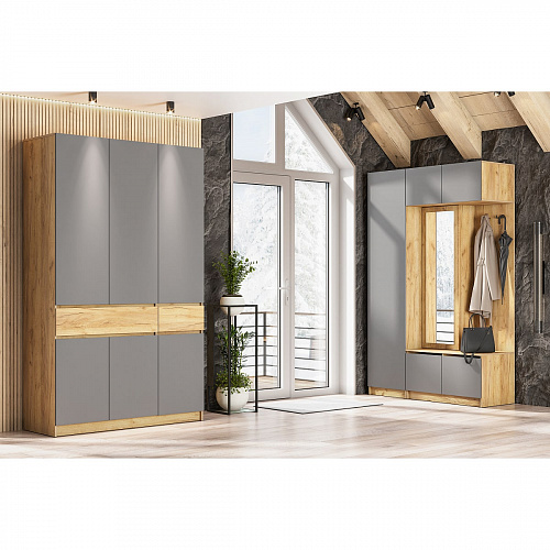 Шкаф трехстворчатый Авиньон Дуб Крафт Золотой/Графит серый