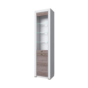 Шкаф-витрина Оливия 1V1D - эффектный акцент в мебельной композиции гостиной, столовой группы. Шкаф-витрина 1V1D – прямой. Имеет одну витрину (1V - закаленное стекло – 4 мм), одну дверь (1D). За витриной расположены полки, также из закалённого стекла (толщина 6 мм), за глухой дверью – полка из ЛДСП.