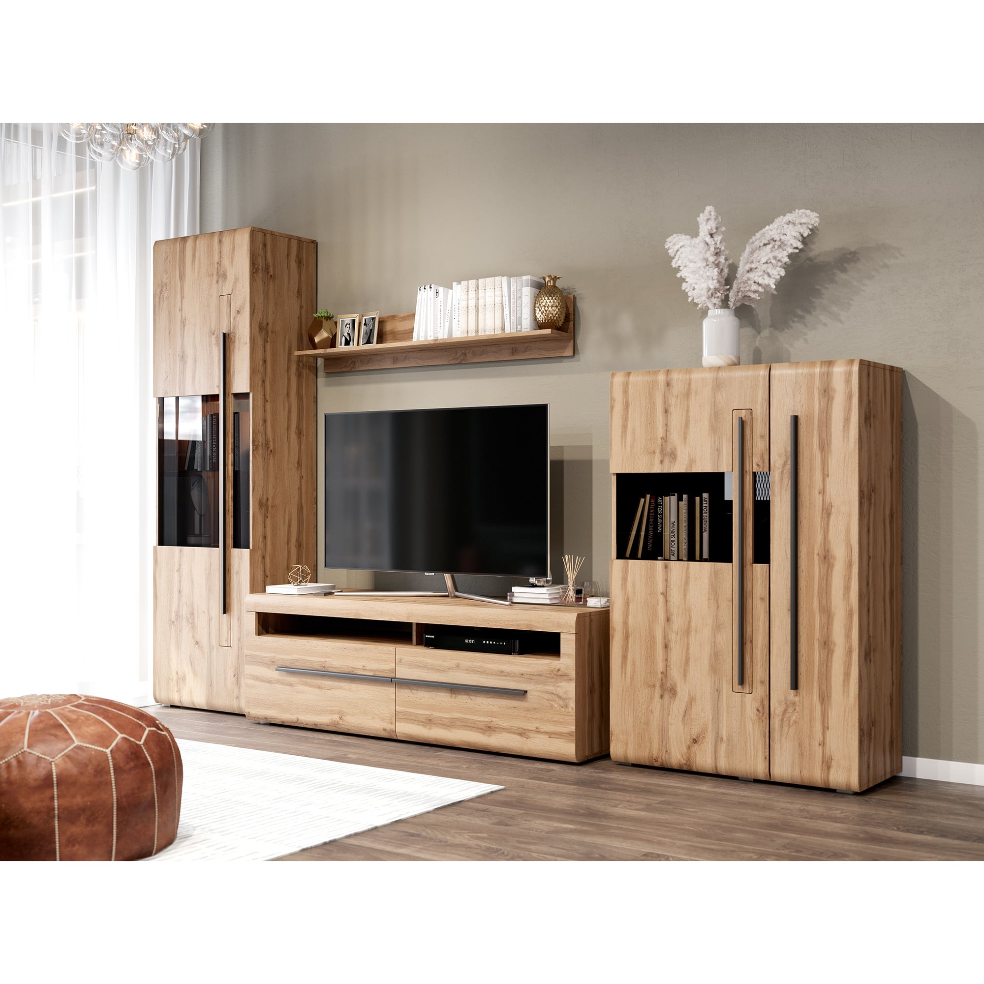 Корпус тумбы изготовлен из ЛДСП, фасады с закругленными линиями - из МДФ. Стиль изделия подчеркивает черная металлическая ручка.