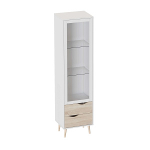 Шкаф-витрина «Соната» идеально впишется в любой интерьер и будет отлично смотреться как в составе мебельного ансамбля, так и отдельно. Благодаря распашной дверце со стеклянными вставками и белым фасадам из ЛДСП, ваша коллекция фарфора, декоративные тарелки или книги будут защищены от пыли, а их содержимое будет легко просматриваться. В нижнем отсеке с двумя выдвижными ящиками, украшенными прорезанными ручками, можно хранить предметы практического назначения.