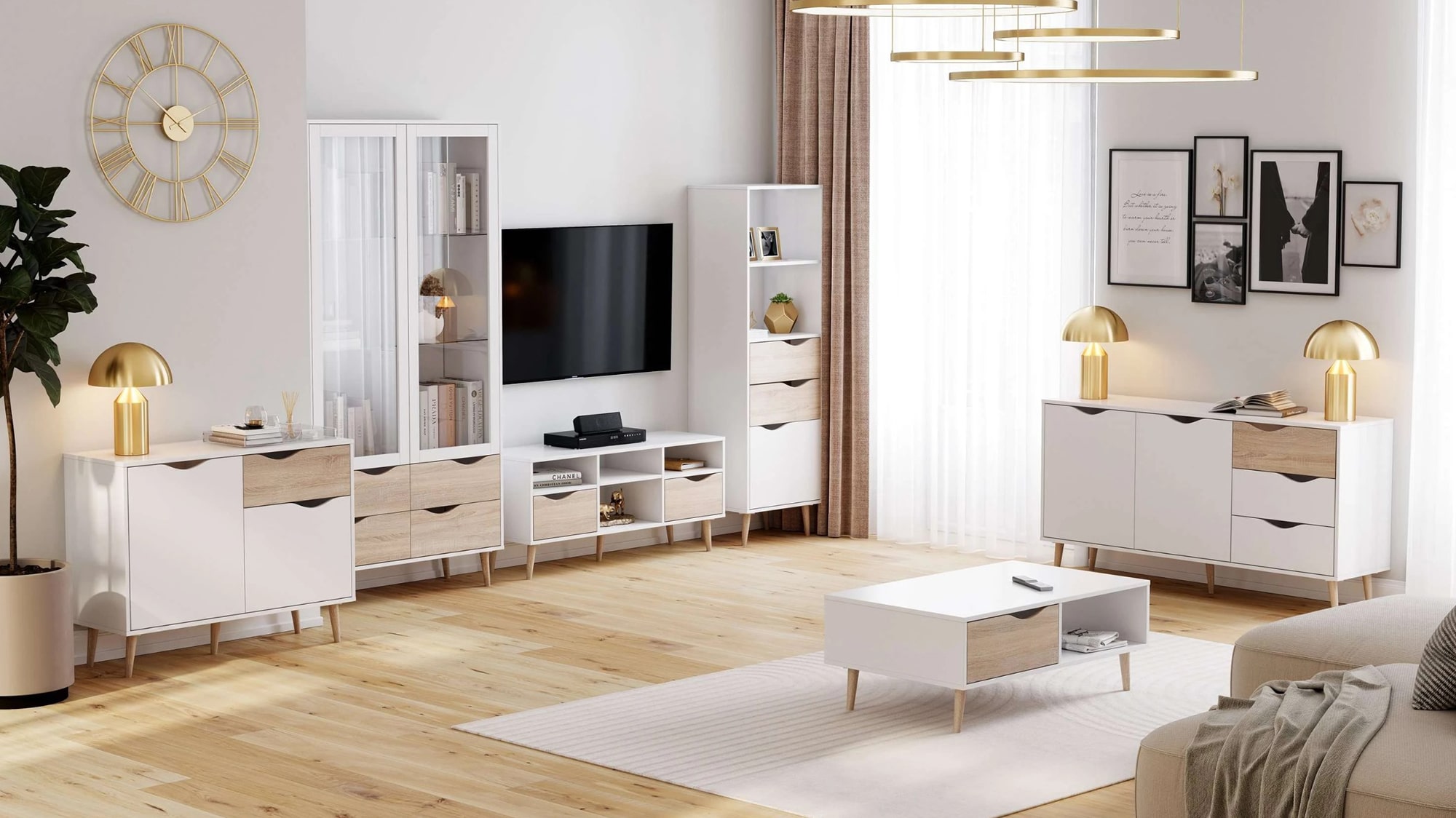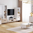 Серия «Соната» характеризуется своей простотой и естественностью, выполнена в природных оттенках. Дизайн шкафа отражает скандинавский стиль: чистые линии, белые фасады и элегантные опоры из массива берёзы.