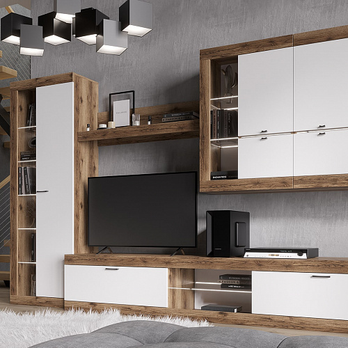 Гостиная Прага гармонично впишется в любой интерьер, а возможность подсветки создаст атмосферу комфорта.