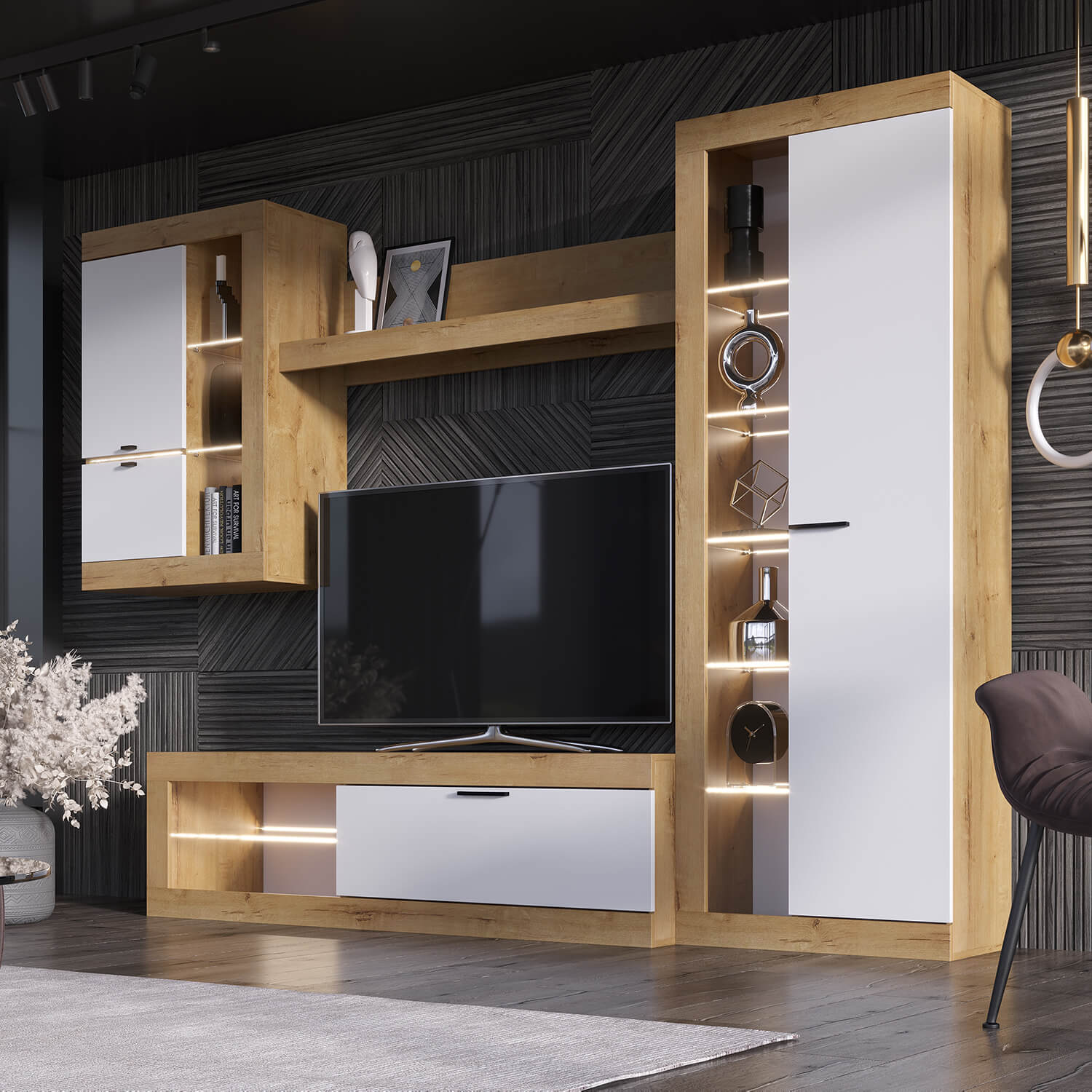 Гостиная Прага гармонично впишется в любой интерьер, а возможность подсветки создаст атмосферу комфорта.