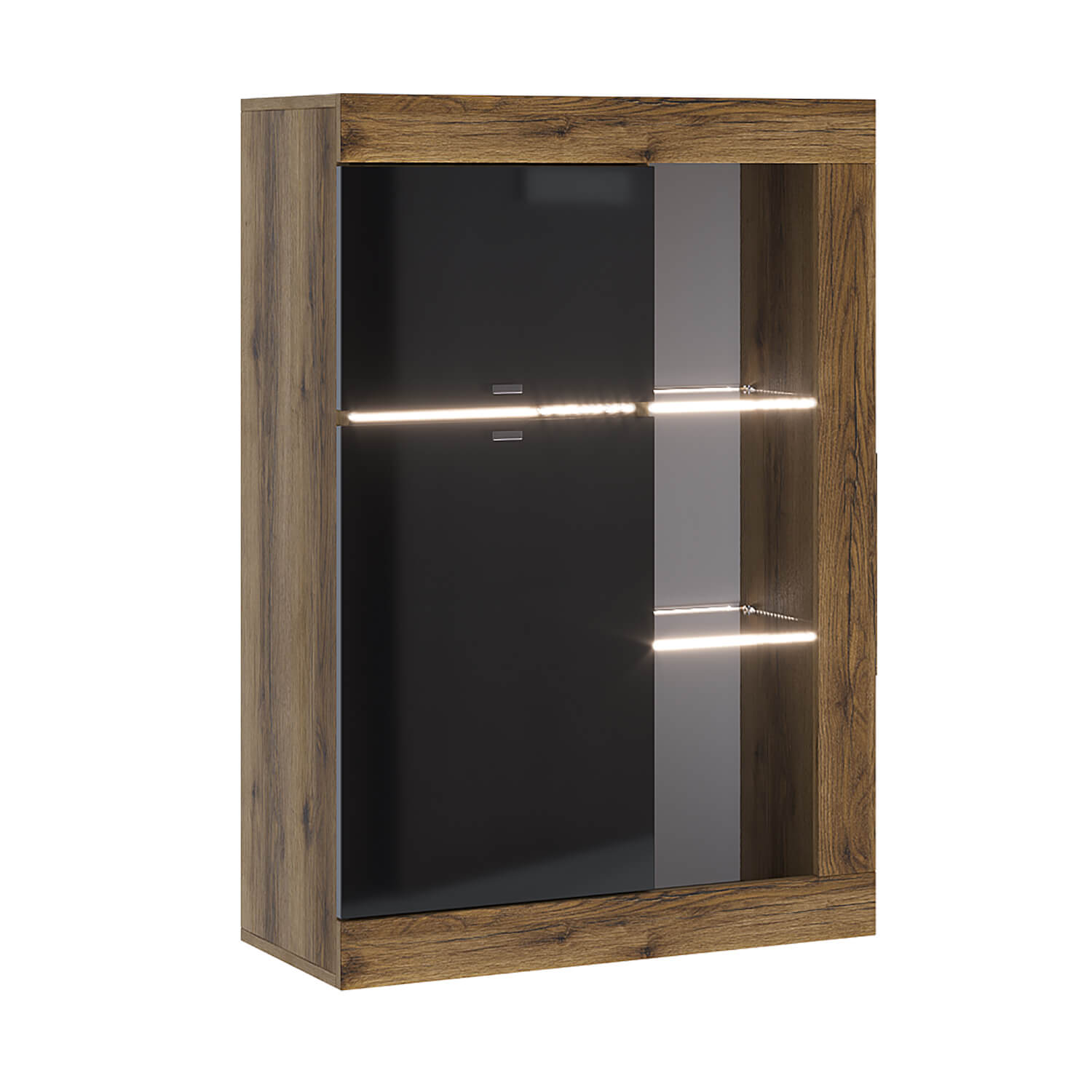 Шкаф-витрина универсальная ПРАГА Дуб делано/Черный графит