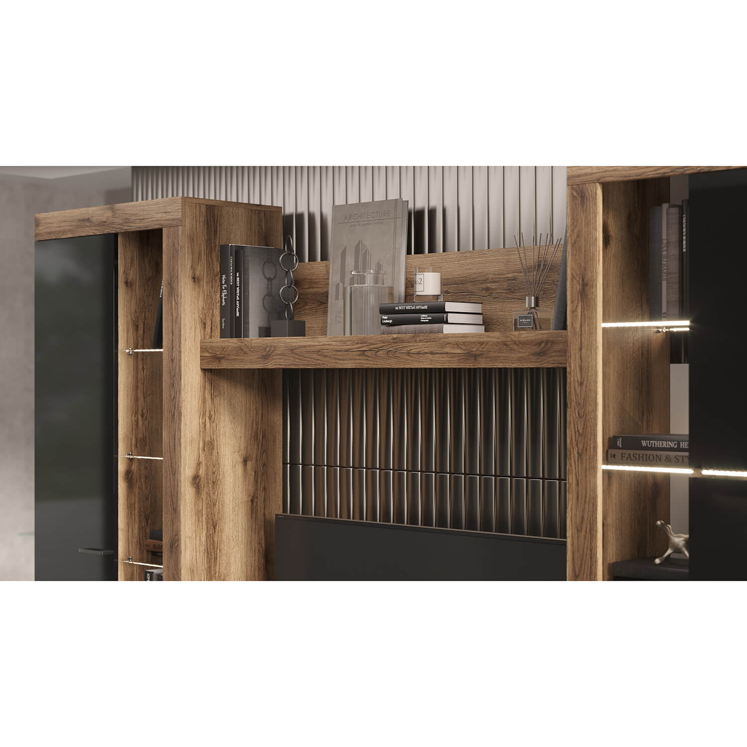 Гостиная Прага гармонично впишется в любой интерьер, а возможность подсветки создаст атмосферу комфорта.