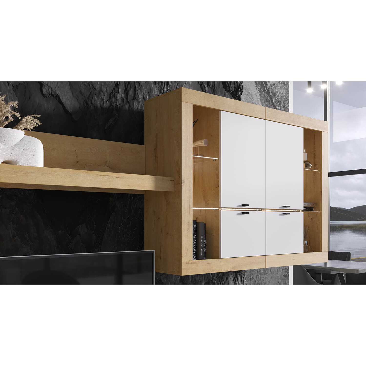 Шкаф-витрина универсальная ПРАГА Дуб Вотан/Белый гладкий