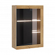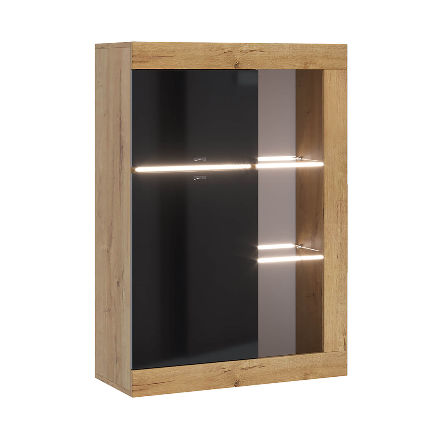 Шкаф-витрина универсальная ПРАГА Дуб Вотан/Черный глянец