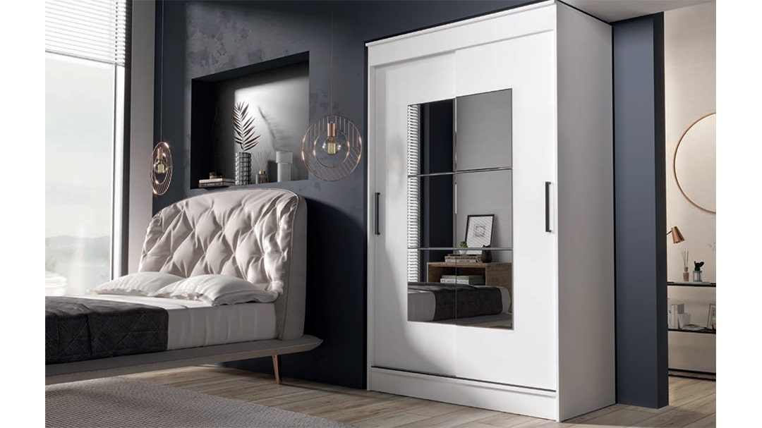 Двери шкафа-купе оснащены раздвижной системой, что обеспечивает удобство использования и экономит пространство.
