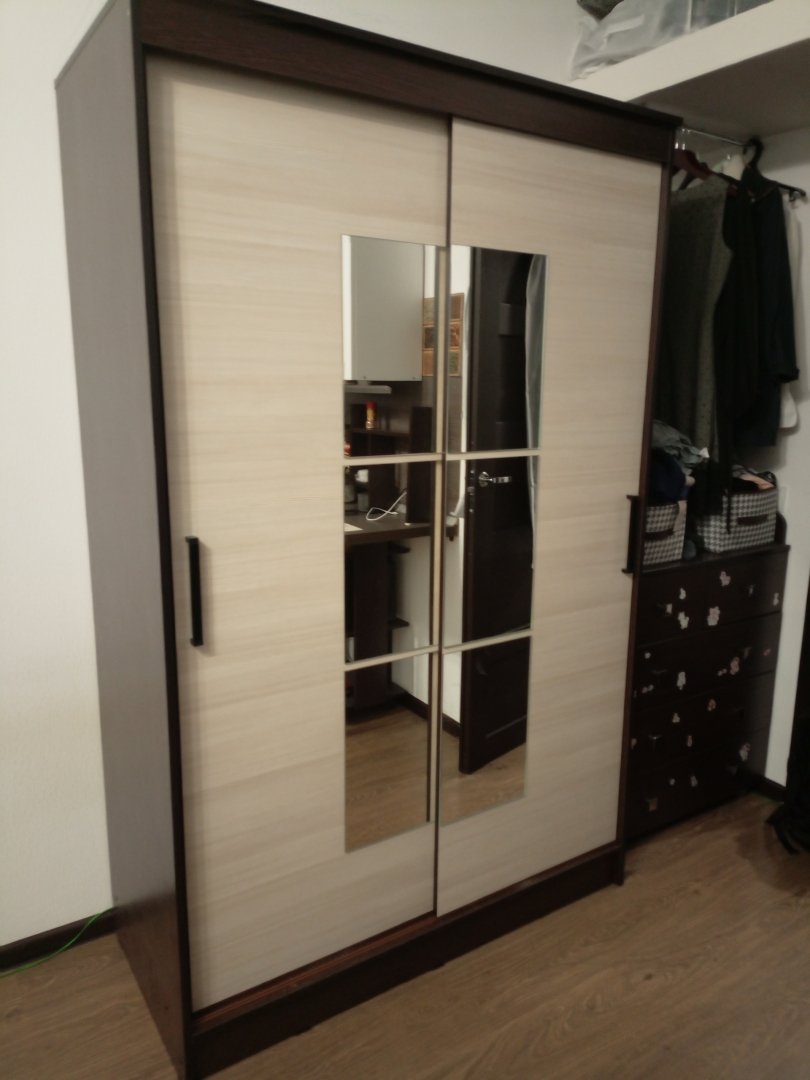 Двери шкафа-купе оснащены раздвижной системой, что обеспечивает удобство использования и экономит пространство.